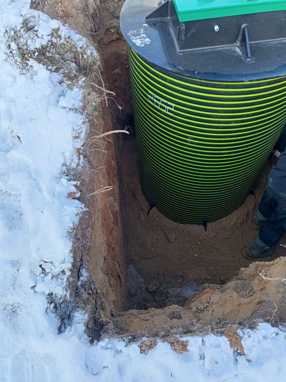 Горизонтальная станция для сезонного проживания. Выпускается в самотечном исполнении. При необходимости ее можно дополнительно укомплектовать насосным колодцем.