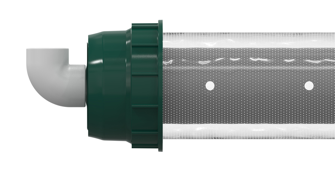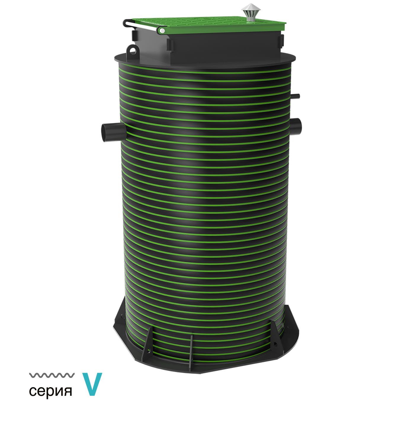 Станция в вертикальном исполнении. Подходит как для постоянного, так и для сезонного проживания. Отведение очищенной воды осуществляется самотёчно либо при помощи дренажного насоса.