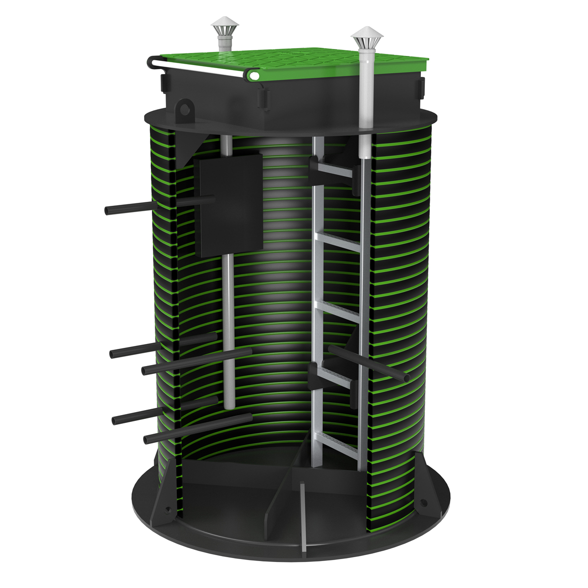 Полимерный кессон обеспечивает доступ к насосному оборудованию в любое время года и эффективно защищает его от воздействий окружающей среды.
