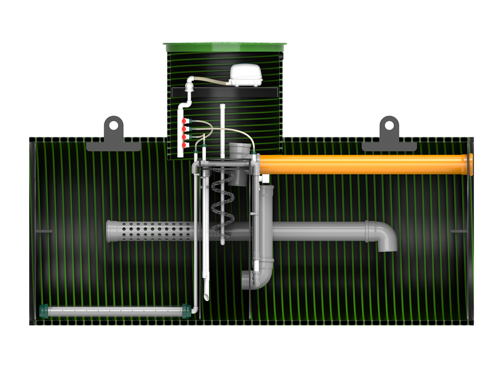 Горизонтальные станции биологической очистки KANN серии ECO имеют производительность от 400 до 900 л/сутки и рассчитаны на количество проживающих от 2 до 6 человек. Принцип работы септика основан не мелко-пузырчатой аэрации, которую создает аэрационная установка, поставляемая в комплекте. За счет подачи воздуха в станцию, а также дополнительных механизмов очистки происходит полная очистка стоков до уровня 98%. Полученная на выходе вода на выходе не имеет запаха, прозрачна и бесцветна. Такую воду можно дренировать в грунт.
