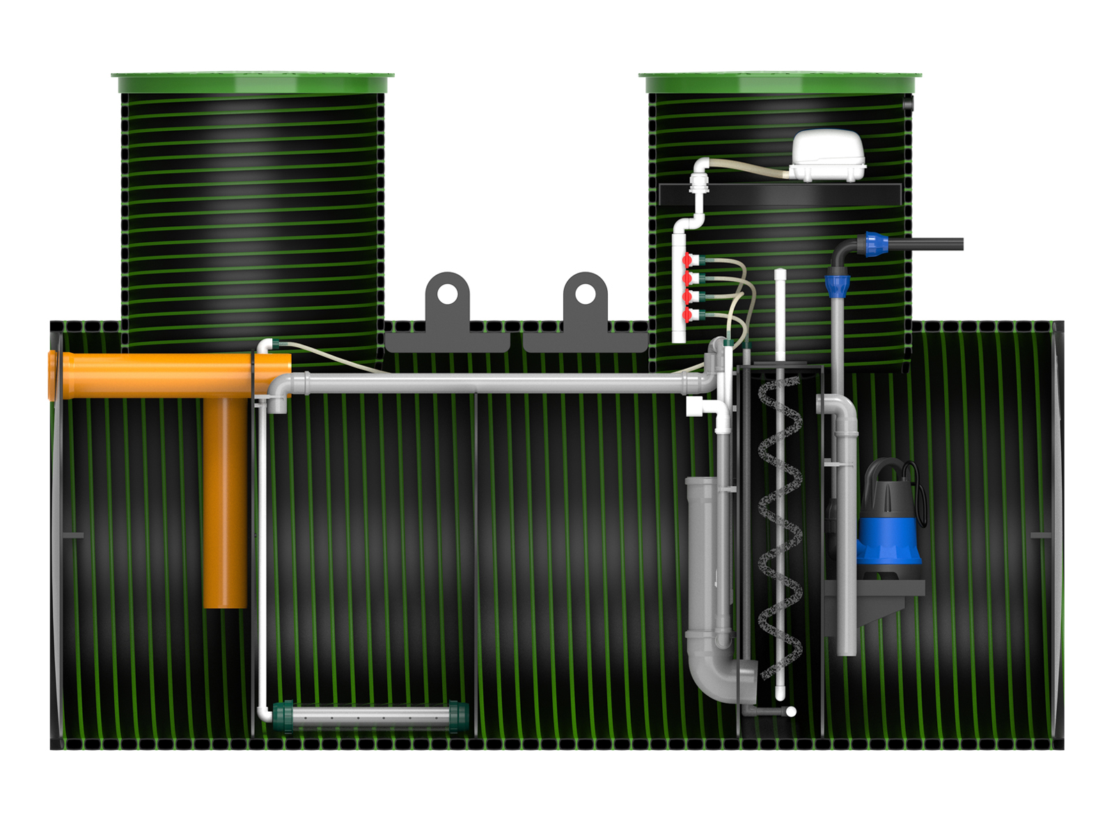 Станция KANN серии ULTRA подходит как для постоянного проживания, так и для сезонного (дачный вариант). Все конструктивные элементы и детали станций серии ULTRA, контактирующие со сточными водами, выполнены из коррозионностойких полимеров. Обслуживание станции заключается в периодической откачке избыточного ила. Откачка производится при помощи дренажного насоса (погружается через люк обслуживания) или при помощи илососной машины.