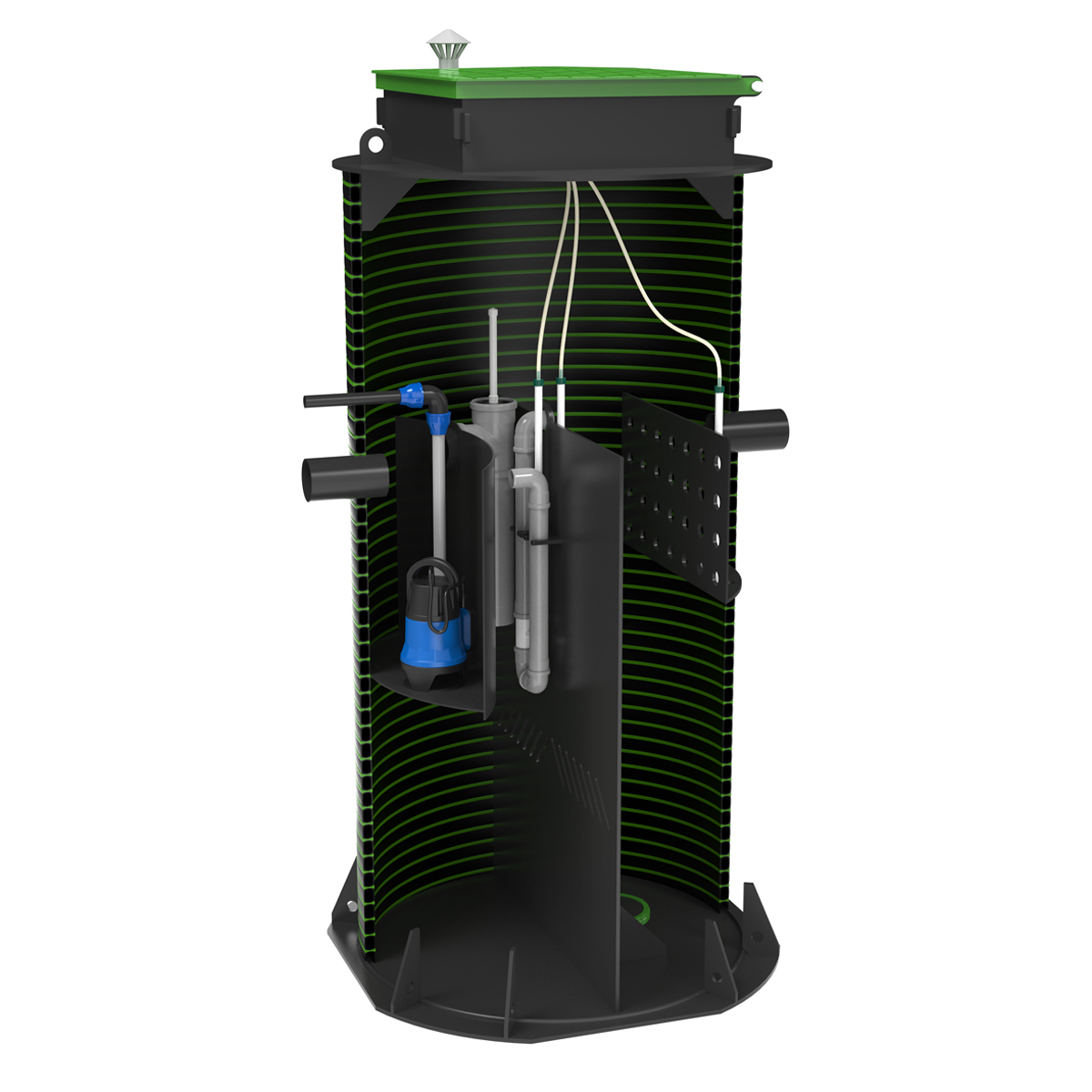 Станция представляет собой цилиндрическую емкость, разделенную на 2(две) технологические камеры/зоны, соединенных между собой самотечными переливами, а также предустановленными эрлифтами. Каждая станция предполагает возможность отведения очищенной воды при помощи самотечного водоотведения либо принудительно при помощи дренажного насоса (в зависимости от выбранной модели СБО).